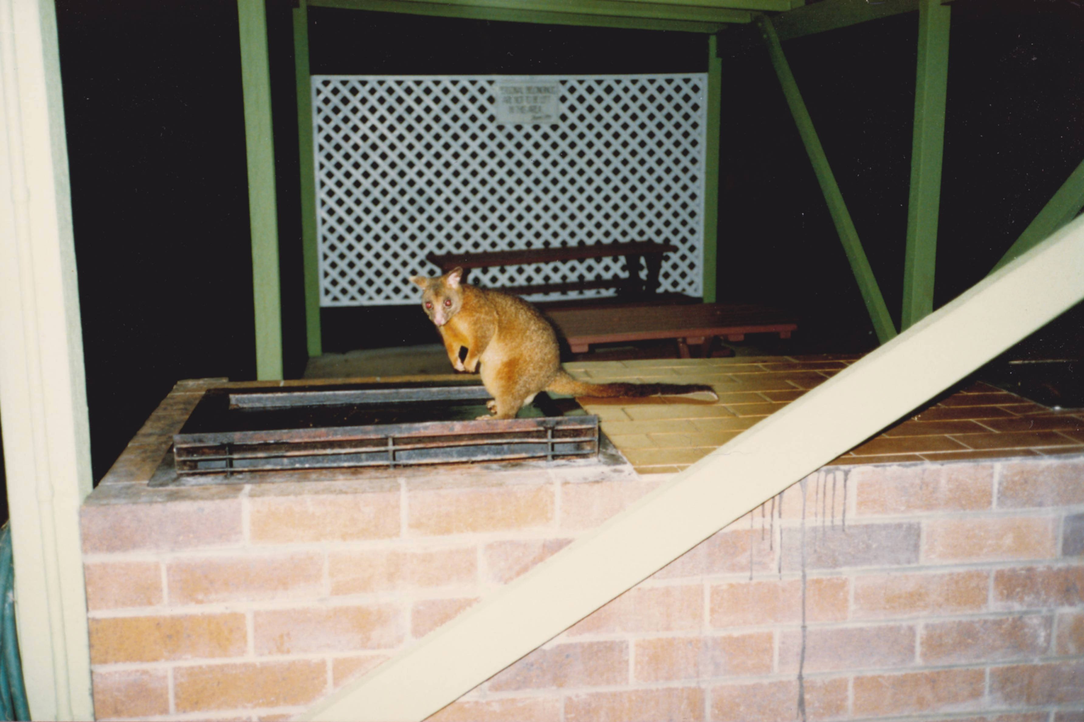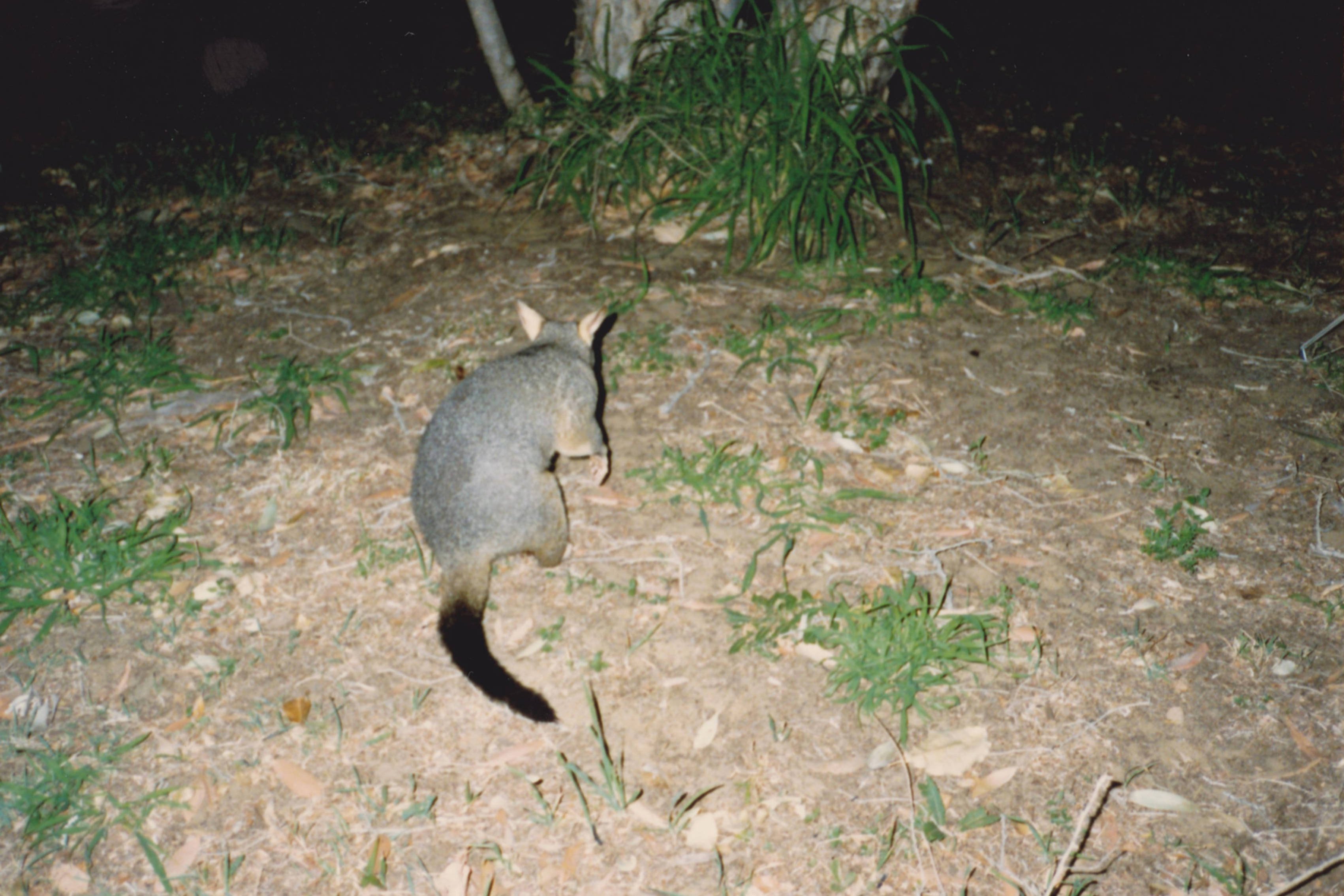 Possum visiting campsite, Shute Harbour Gardens Caravan Park