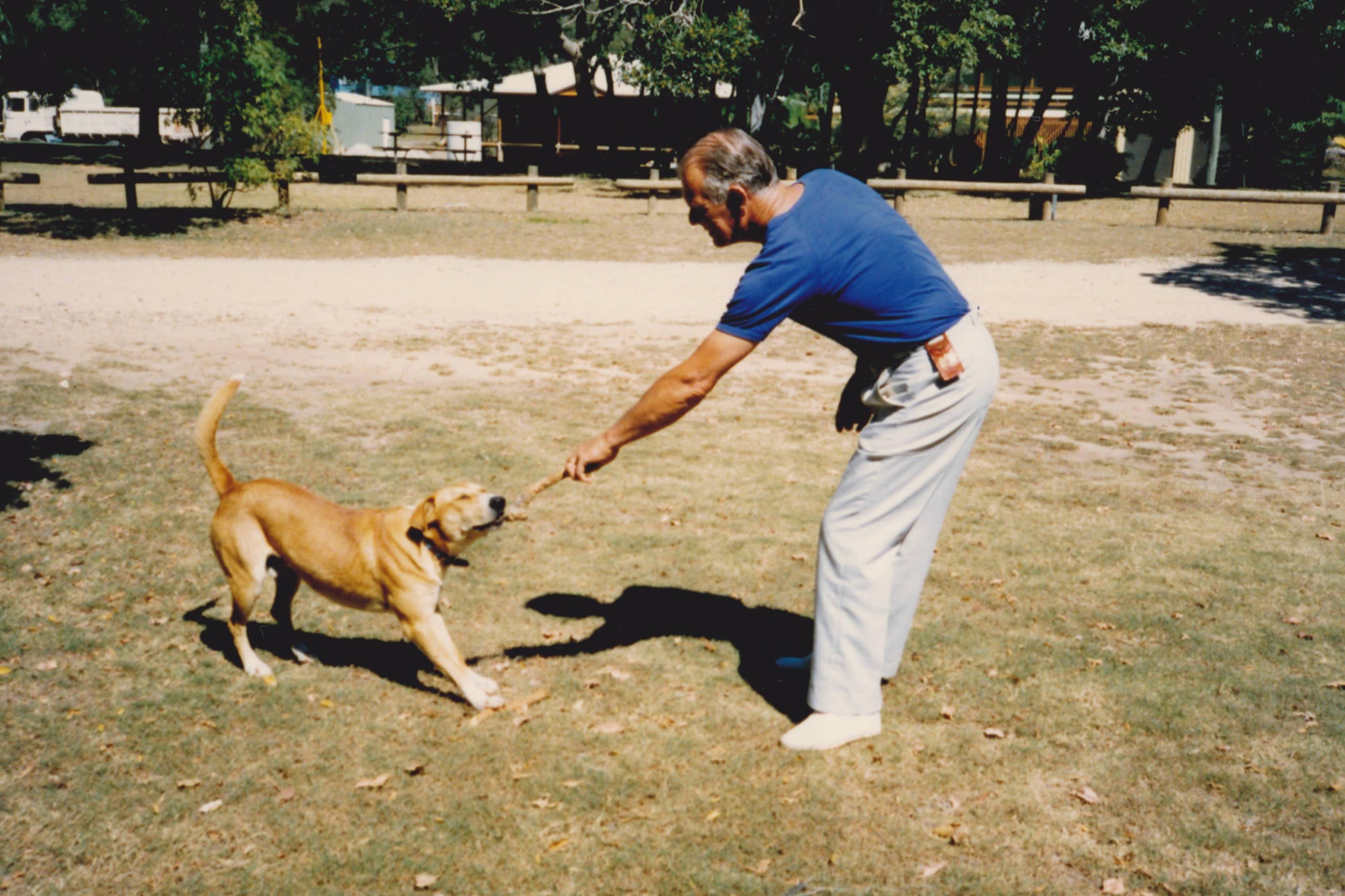 Lunchtime companion – Agnes Water – Tug-of-war definitely his game!