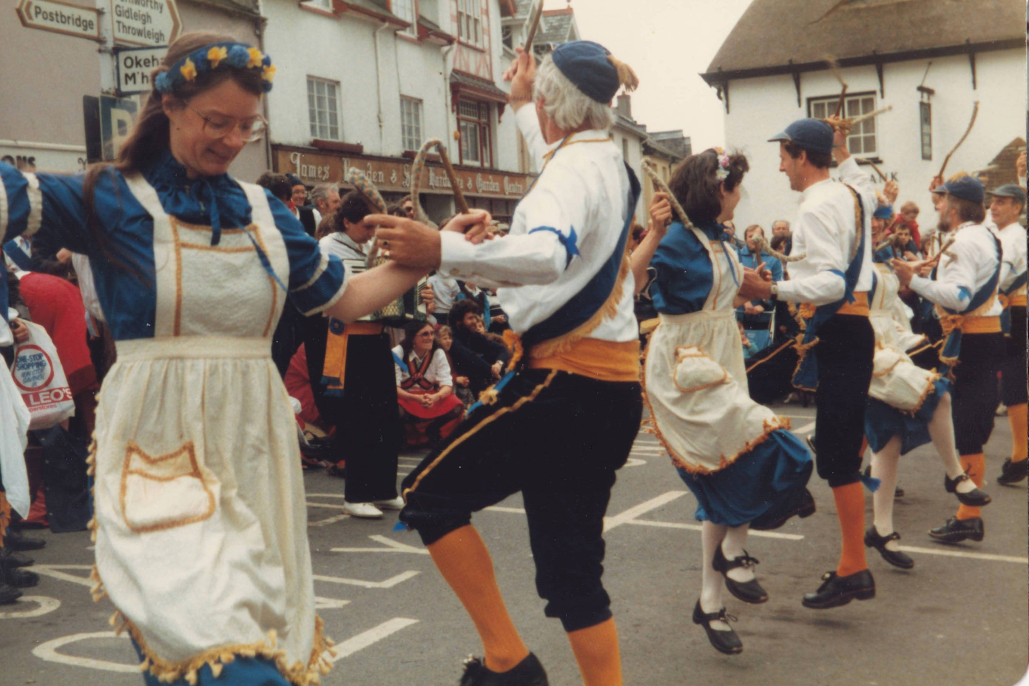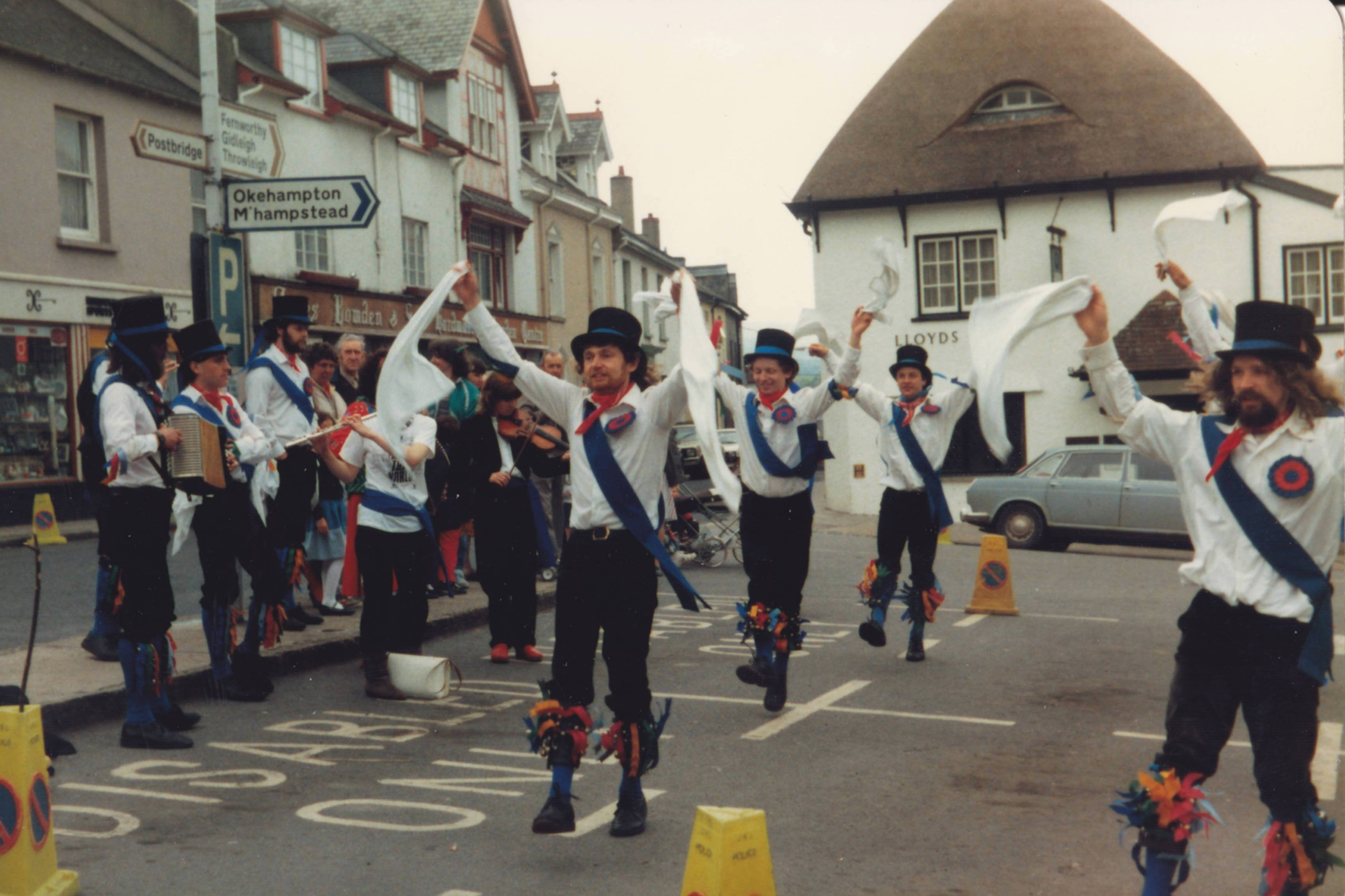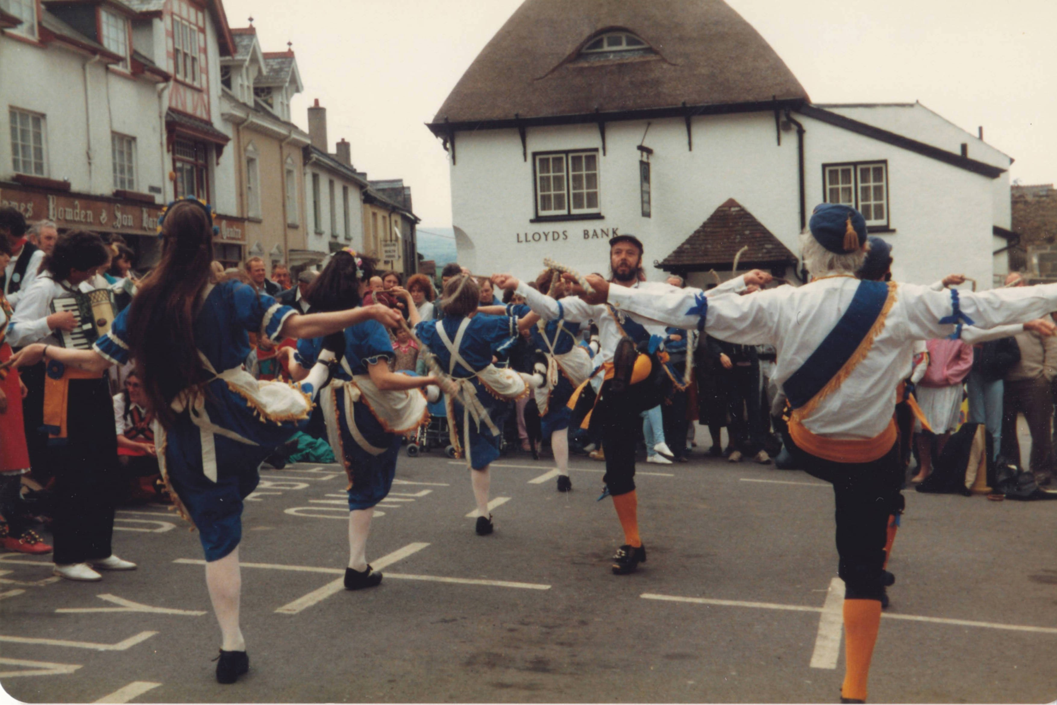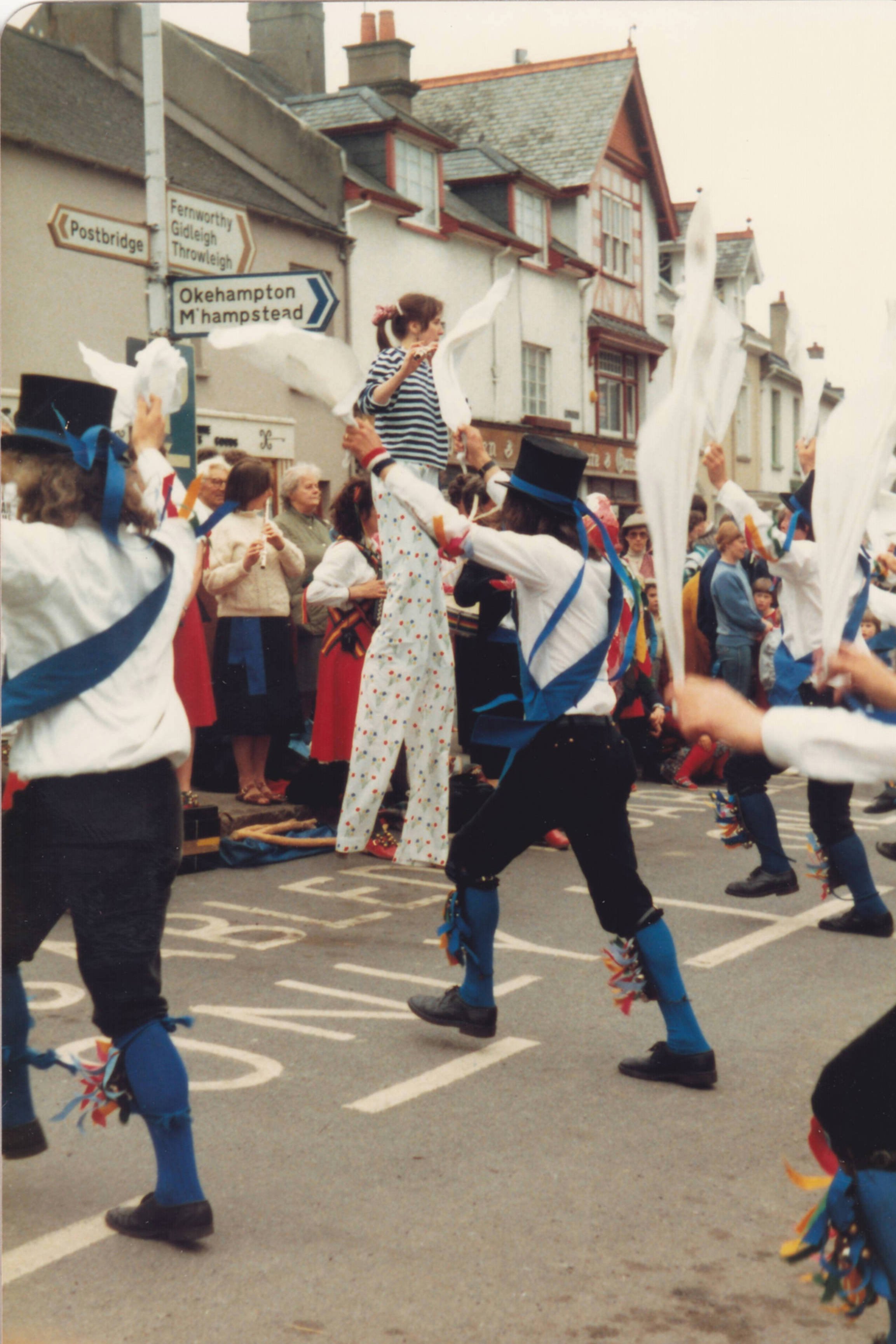 Dancing for Sports Aid, in Market Square, Chagford, May 25, 1986