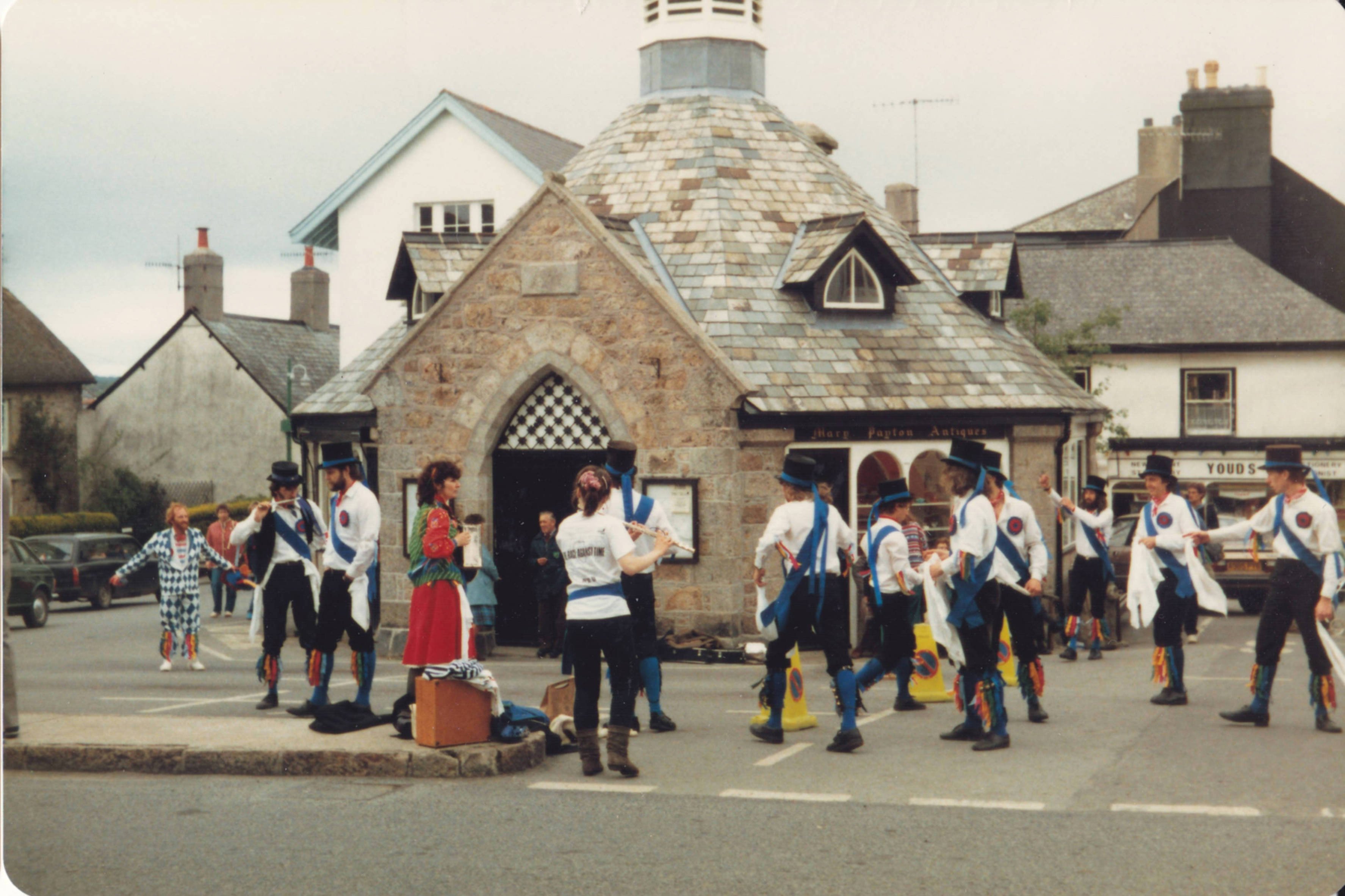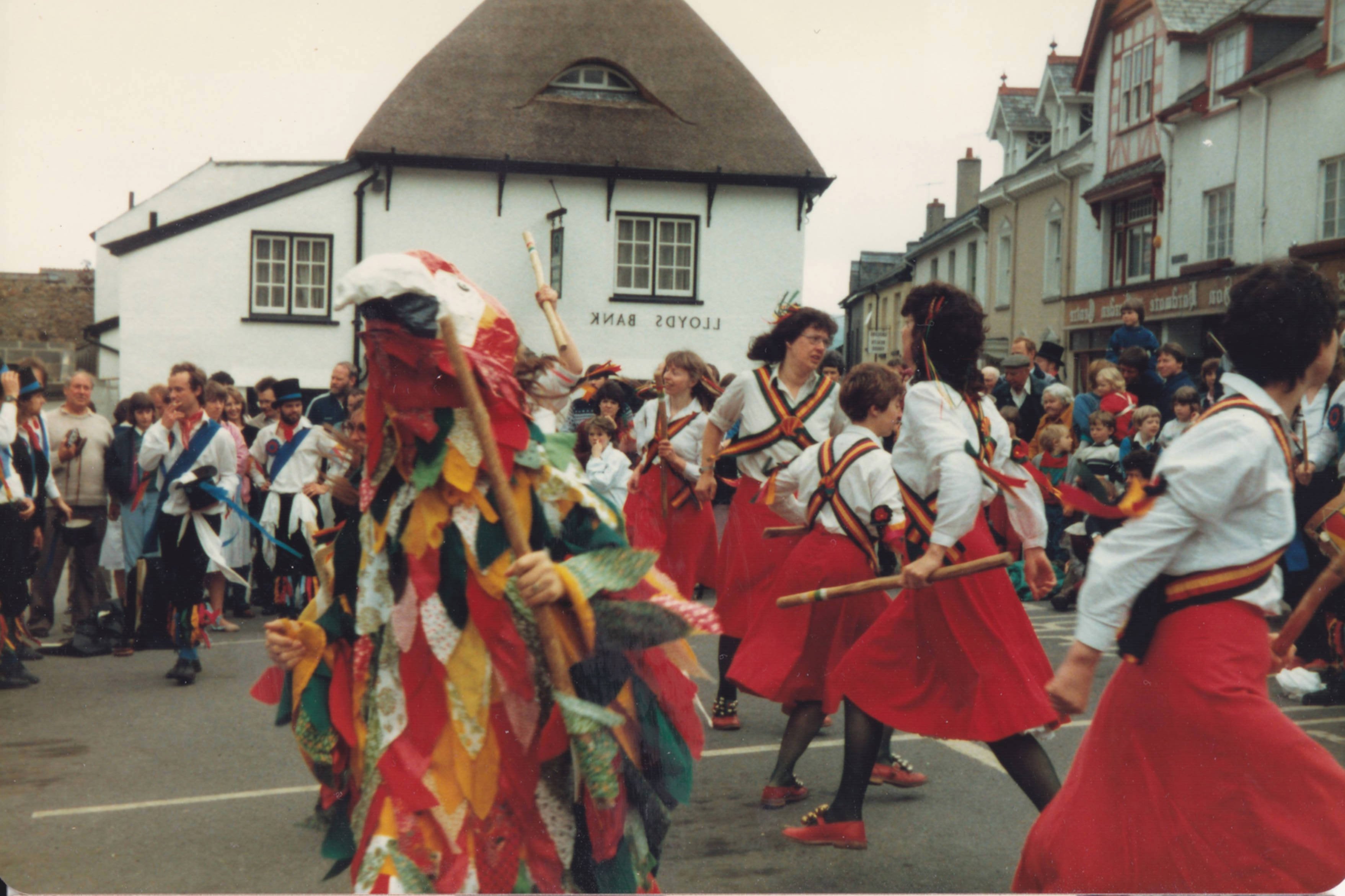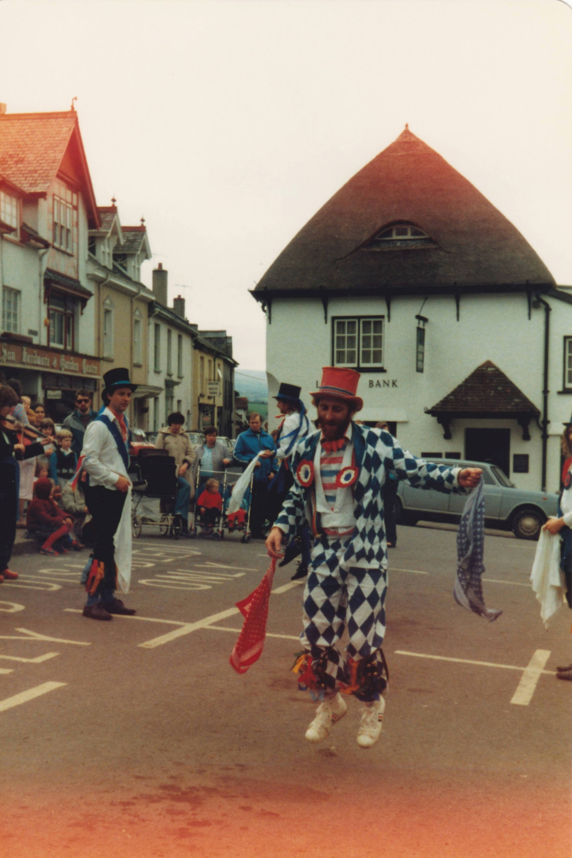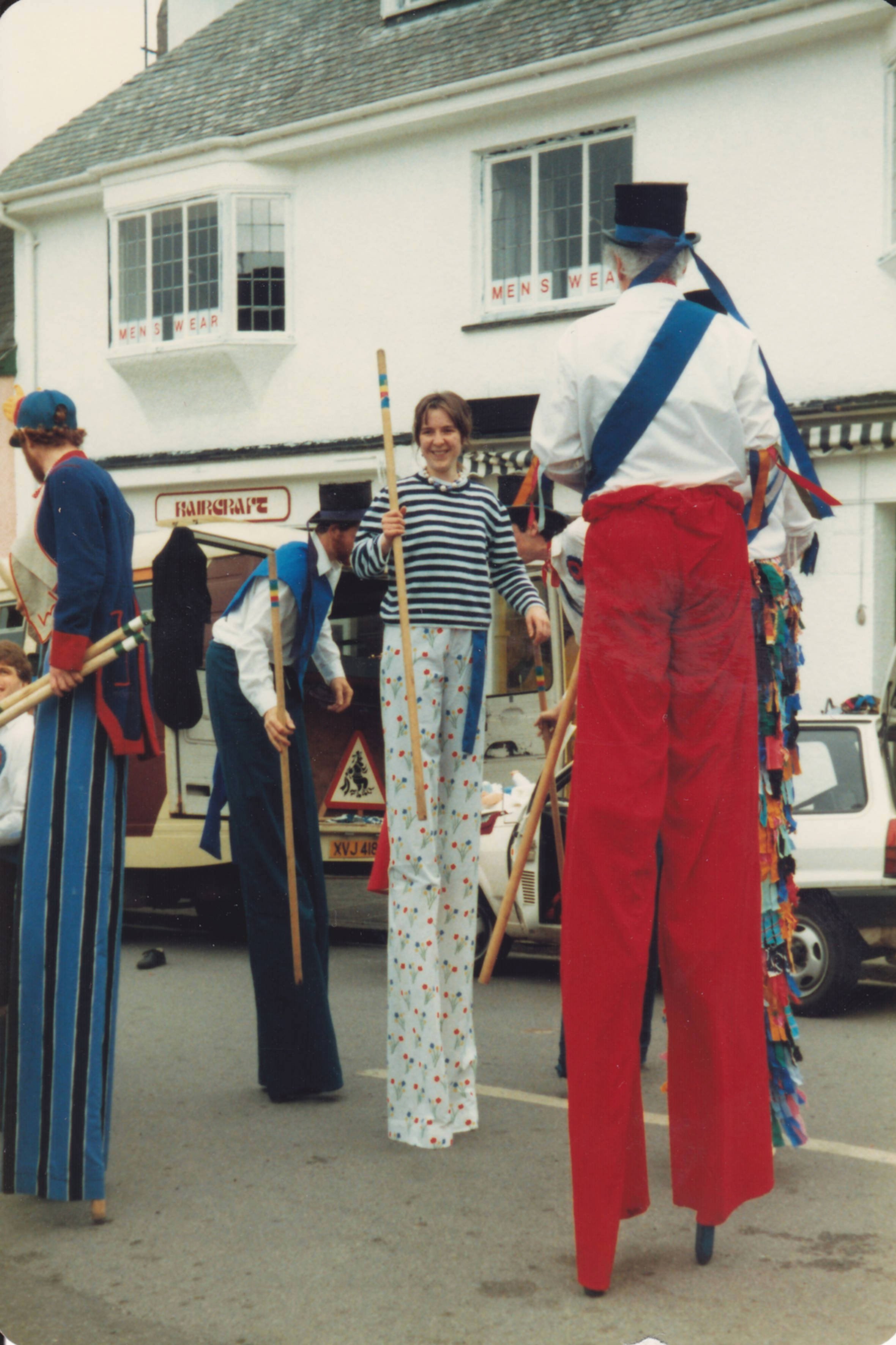 Dancing for Sports Aid, in Market Square, Chagford, May 25, 1986